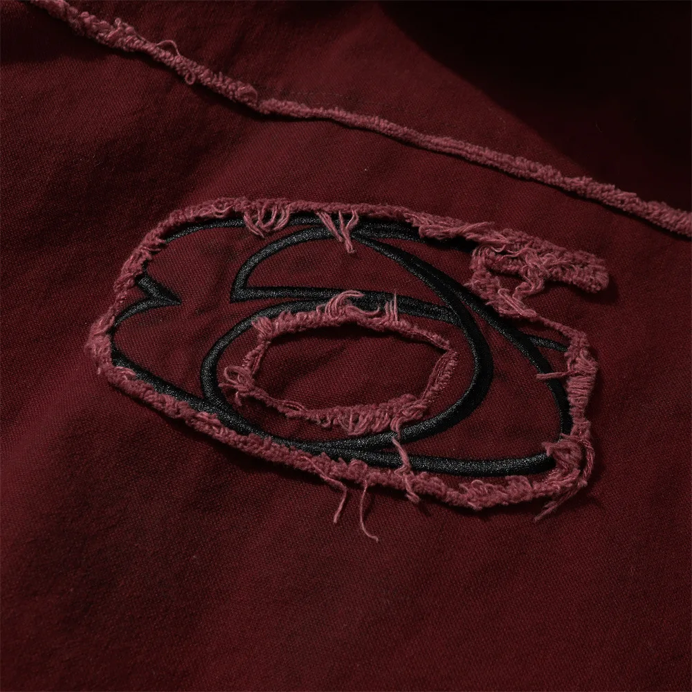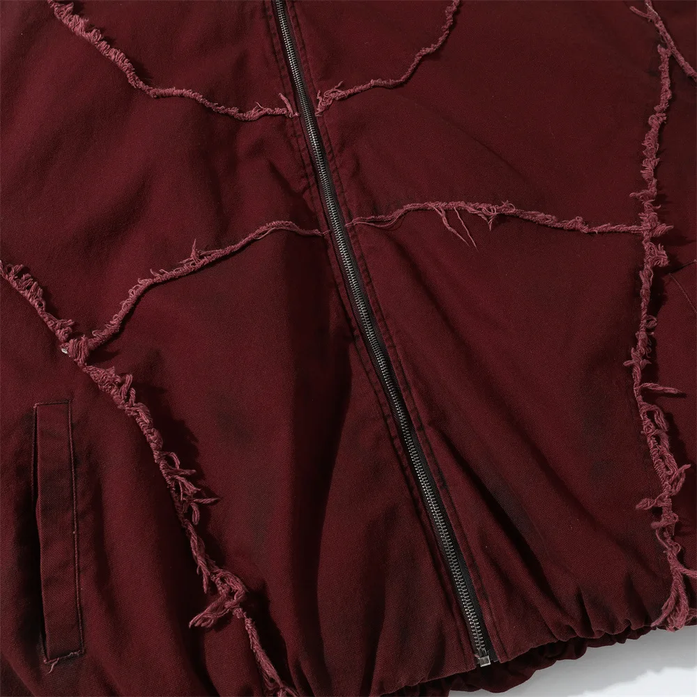 Vintage Dirty Hooded Bomber Jacket Men's Punk Streetwear Trend Niche Deconstructed Patchwork Frayed Denim Coat