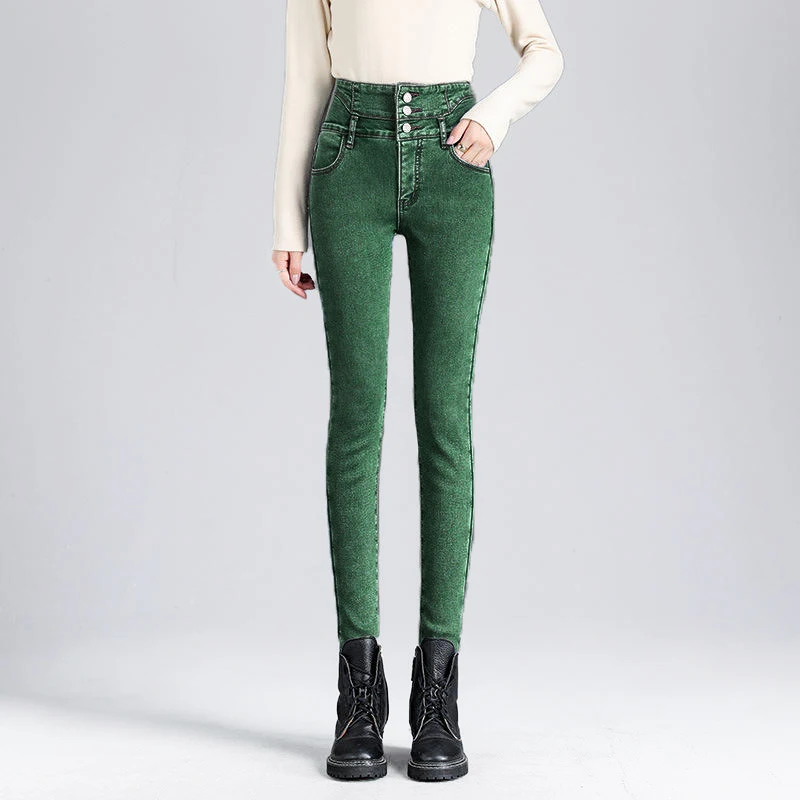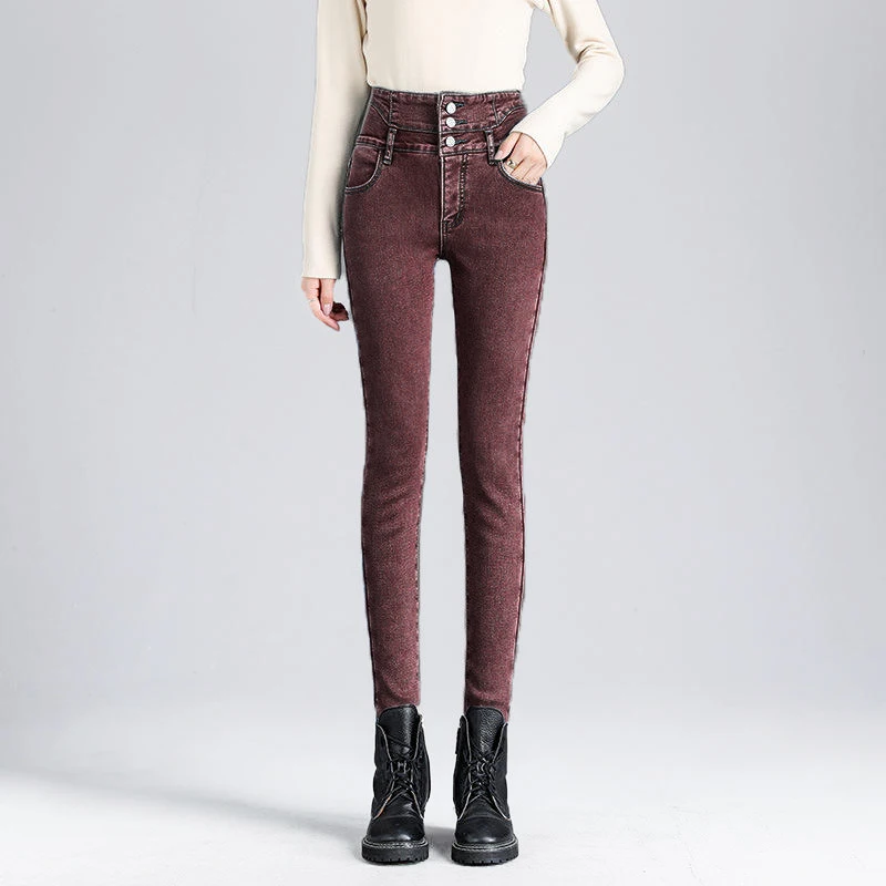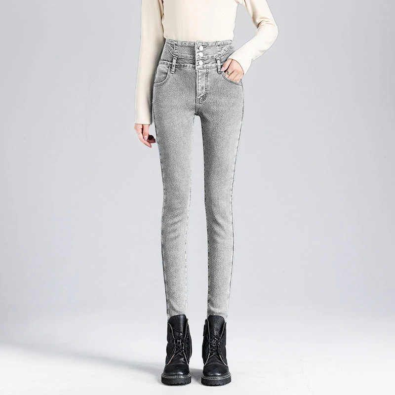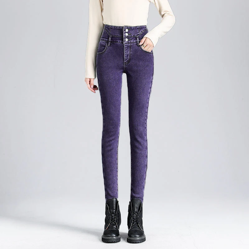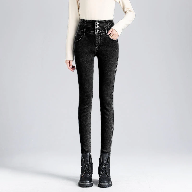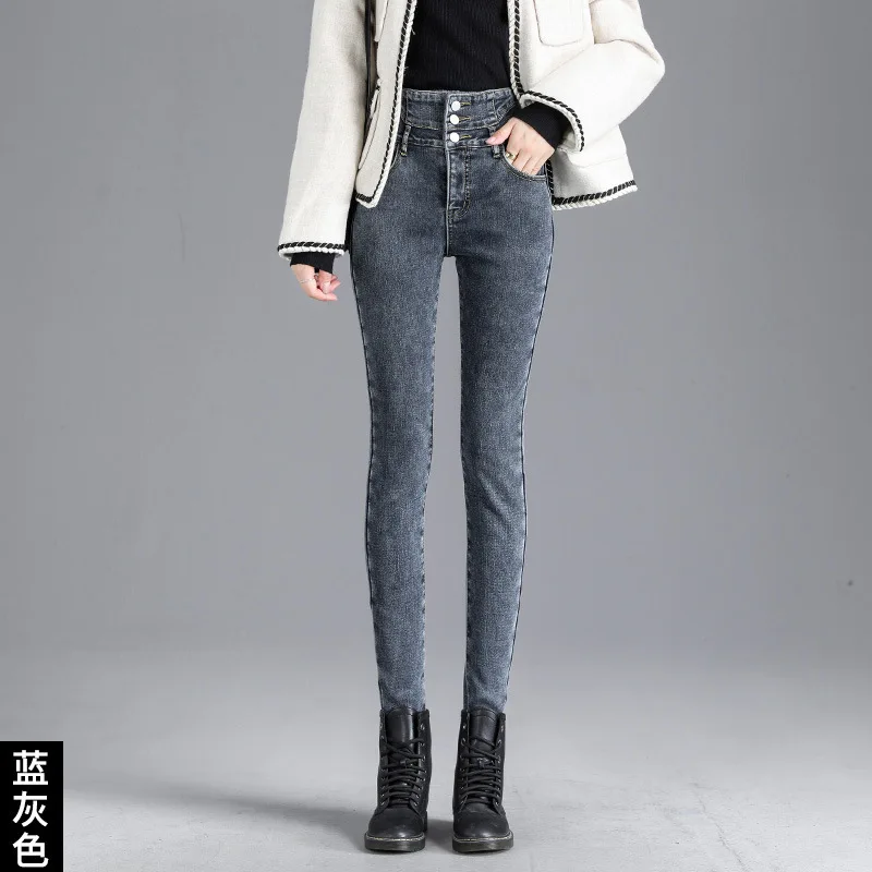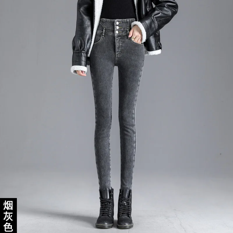 Warm Slim Fit Stretch Ladies Casual Denim Pencil Pants High Waist Winter Thick Velvet Fleece Lined Skinny Jeans Women
