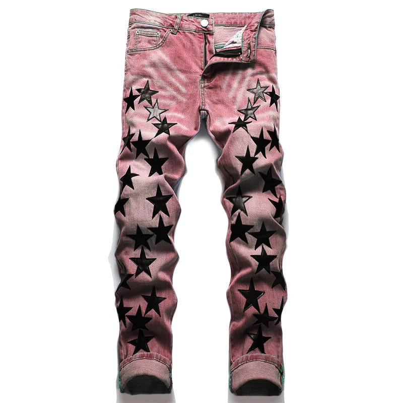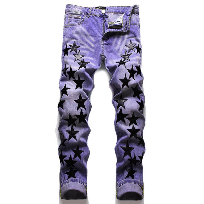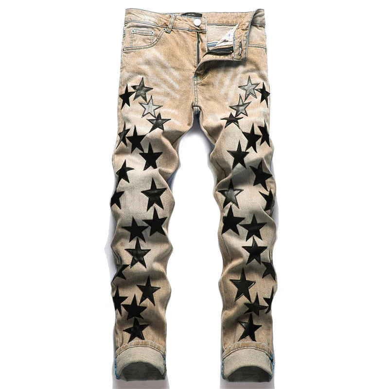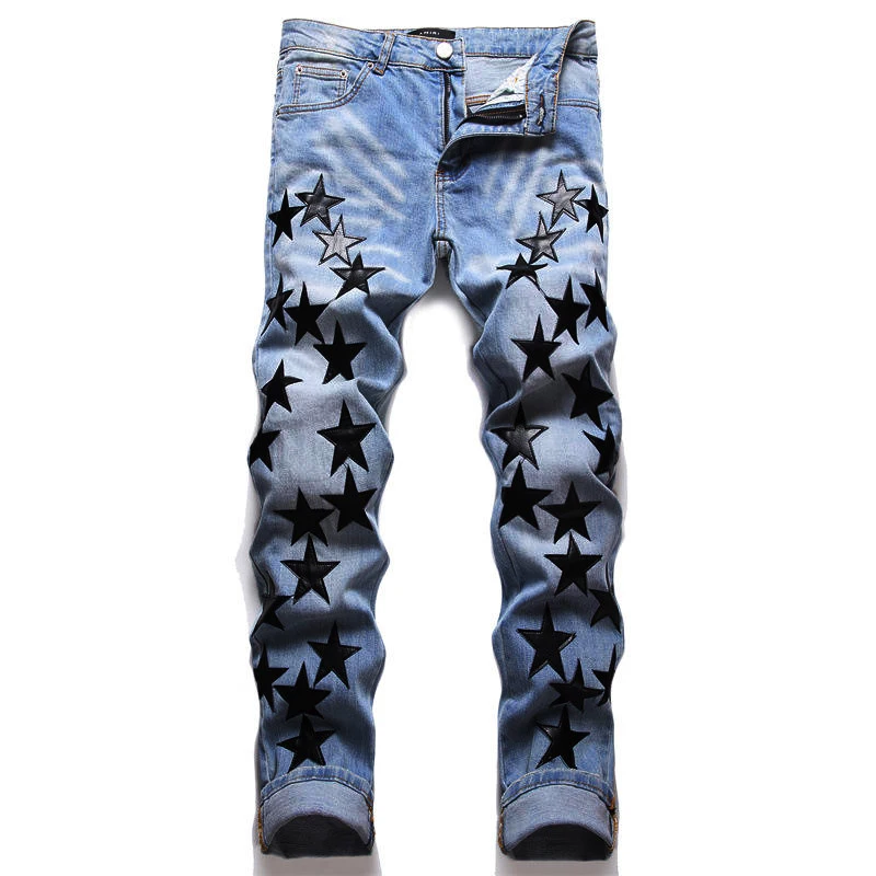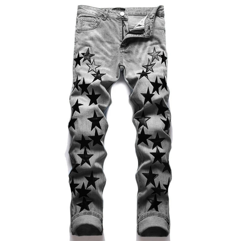 Wholesale Custom Fashion Designer Ripped Star Men's Jeans Pants for Men Star Patched Jeans