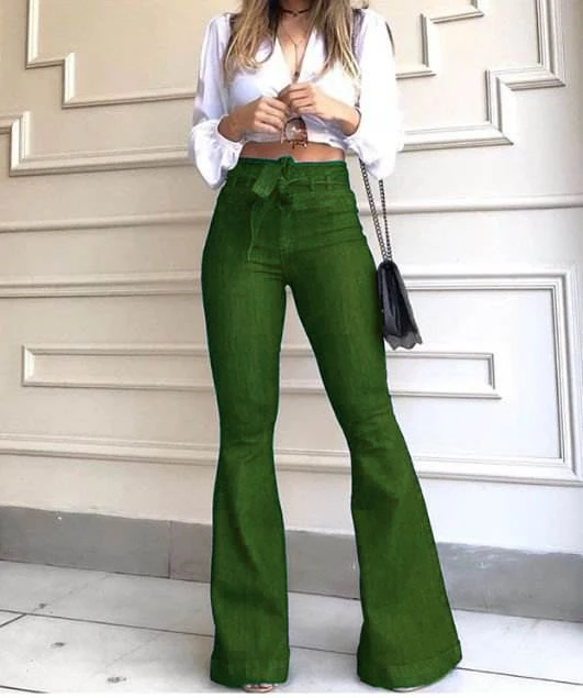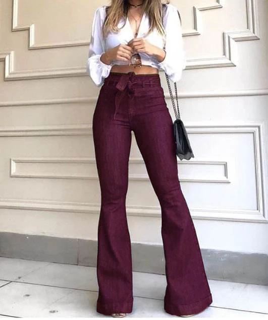 Wholesale Custom Woman Jeans Boot Cut Flare Bell Bottoms Ladies Lace Up Mujer Denim High Waist Jeans Pants For Women