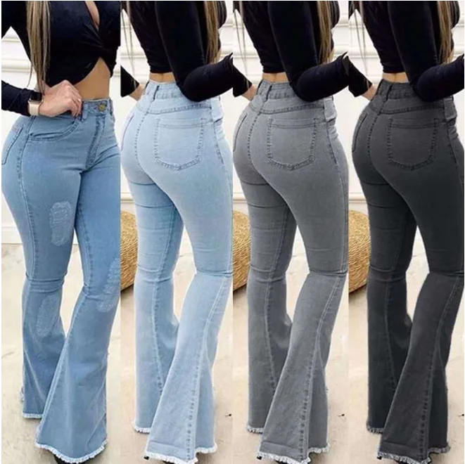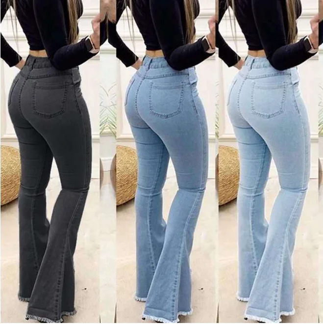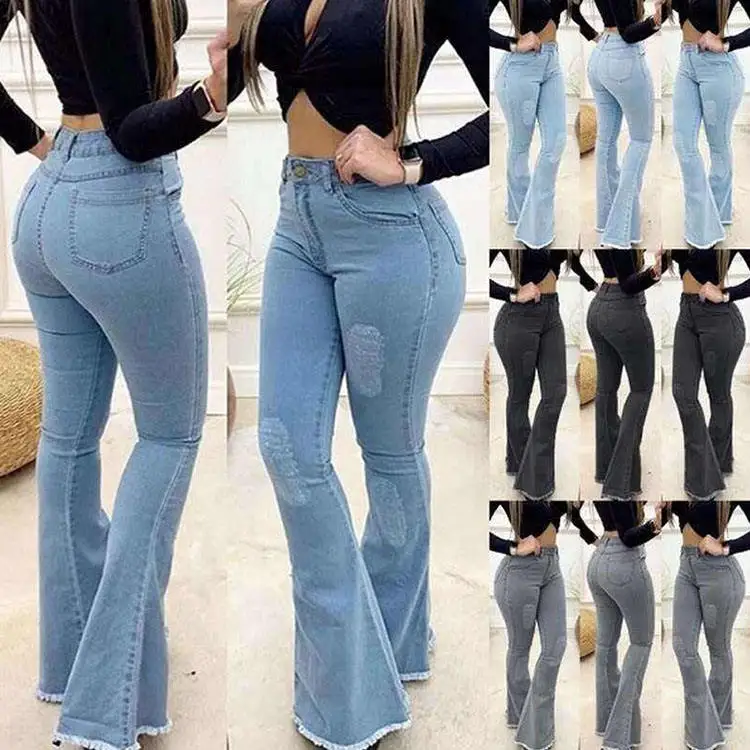 Manufacturers Wholesale Bootcut Women's Denim Pants High Waish Trendy Stretch Flare Leg Custom Ladies Slim Fit Bell Bottom Jeans