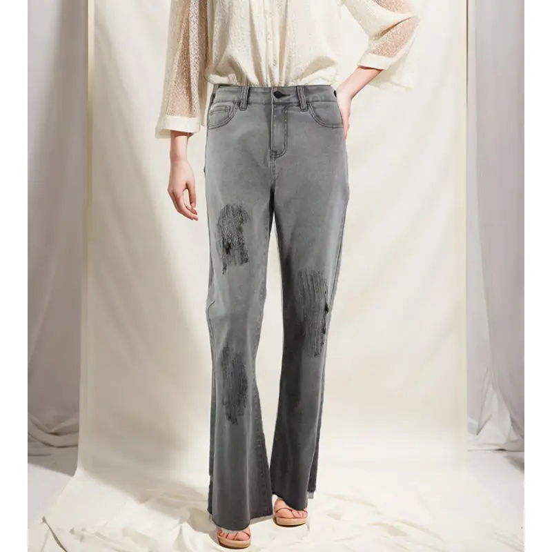 Wholesale High-Waist Bootcut Flare Leg Women's Denim Pants Custom Slim Fit Bell Bottom Jeans Breathable Trendy Design