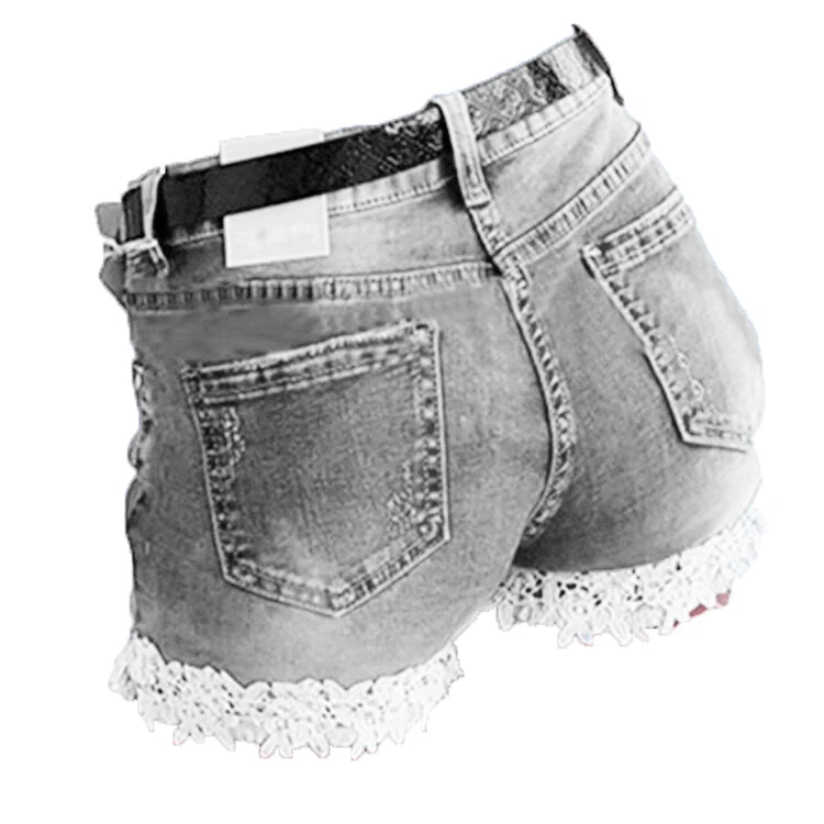 Wholesale High Waist Distressed Denim Jean Shorts for Women Breathable Embroidery Hem Straight Style Casual Summer Collection