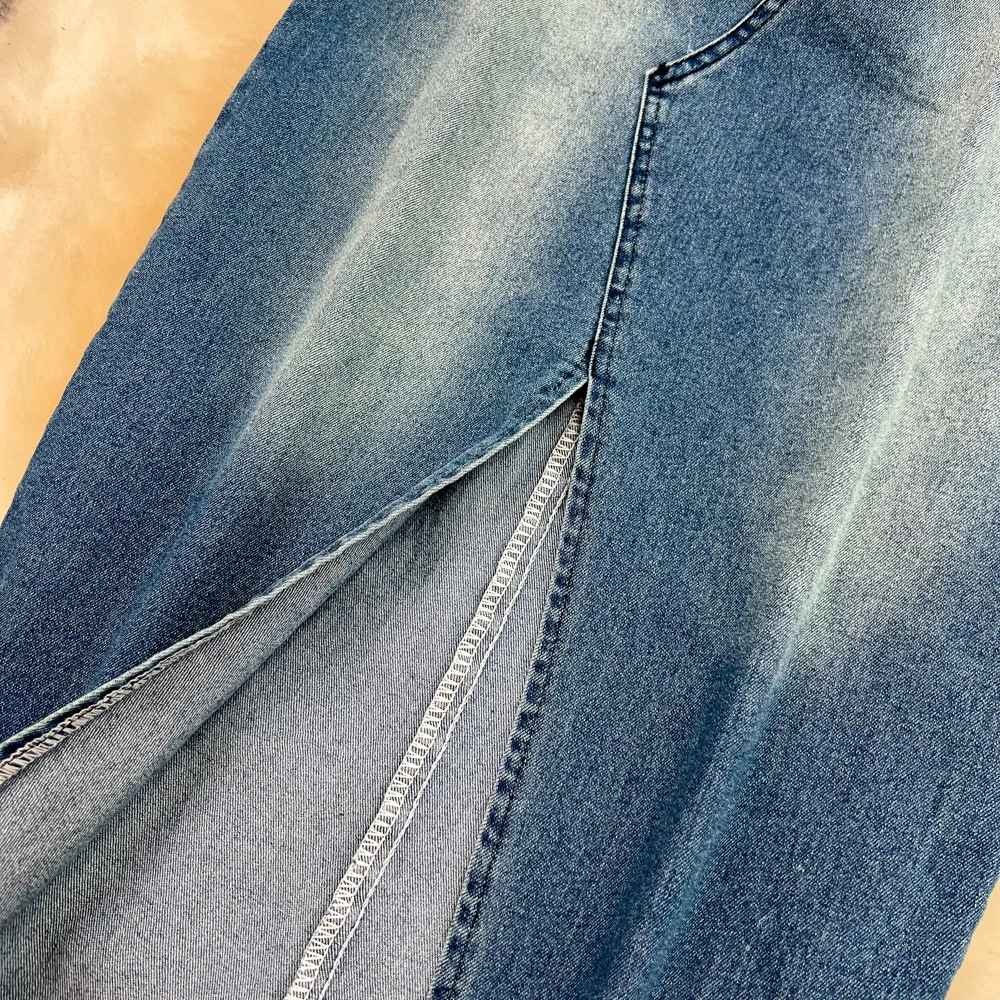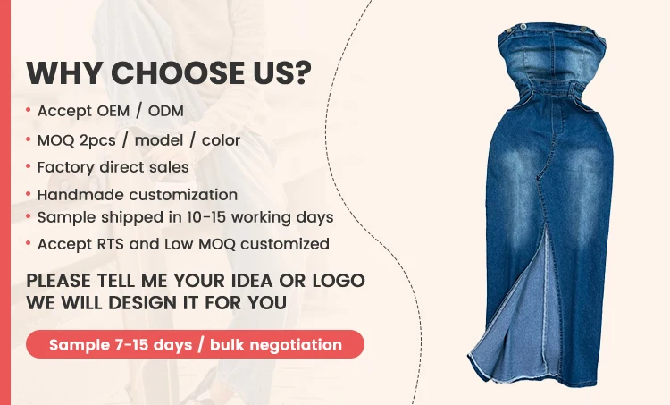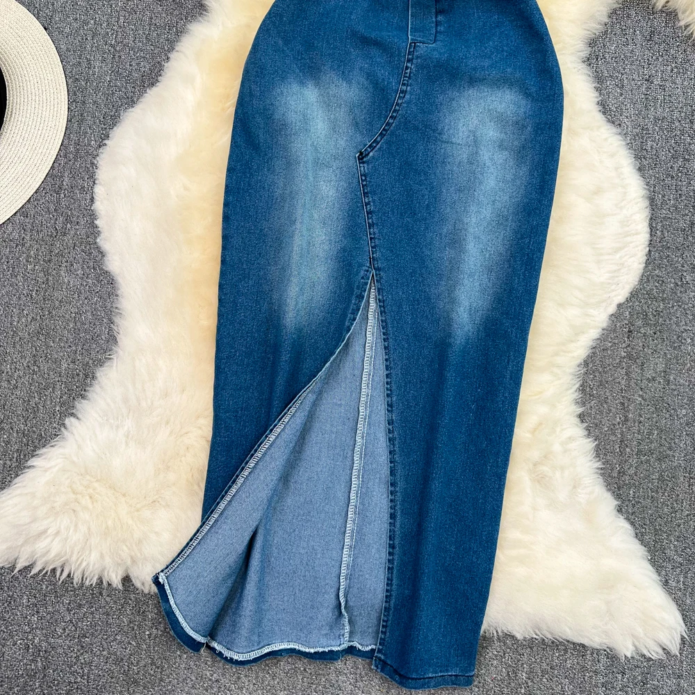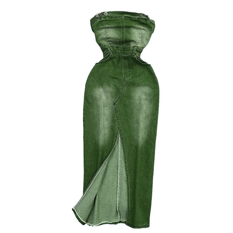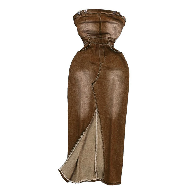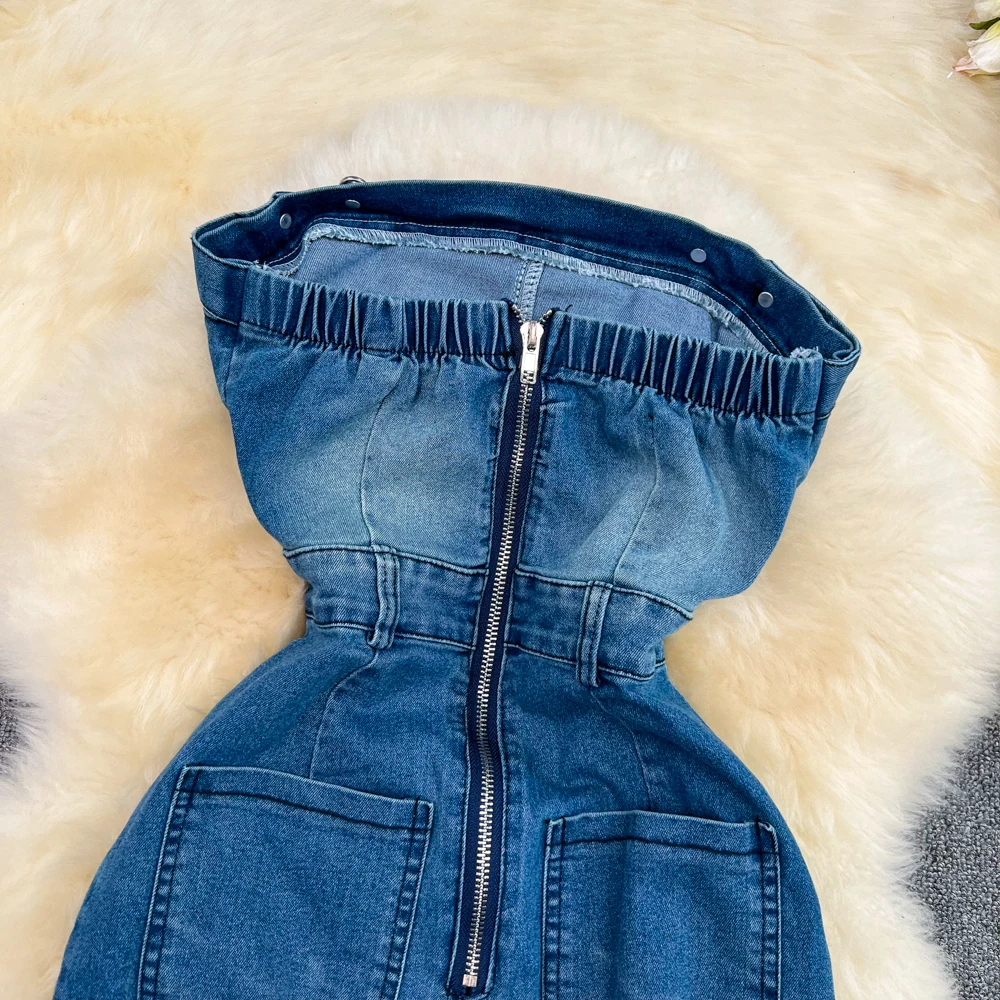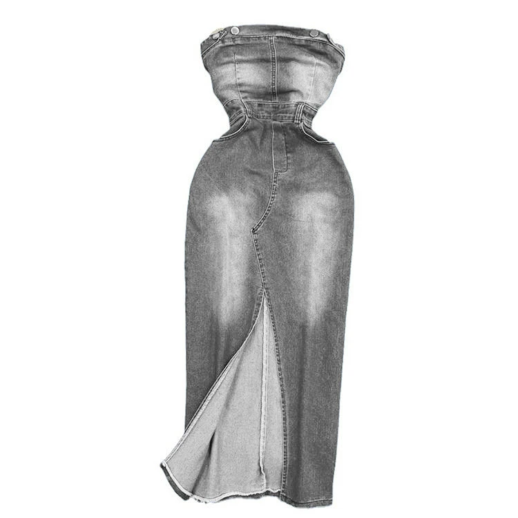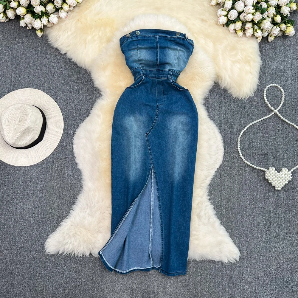 Wholesale One-Word Tube Top Denim Dress Sexy Slim Slit Retro Bag Hip Dress Korean Street Style Dress