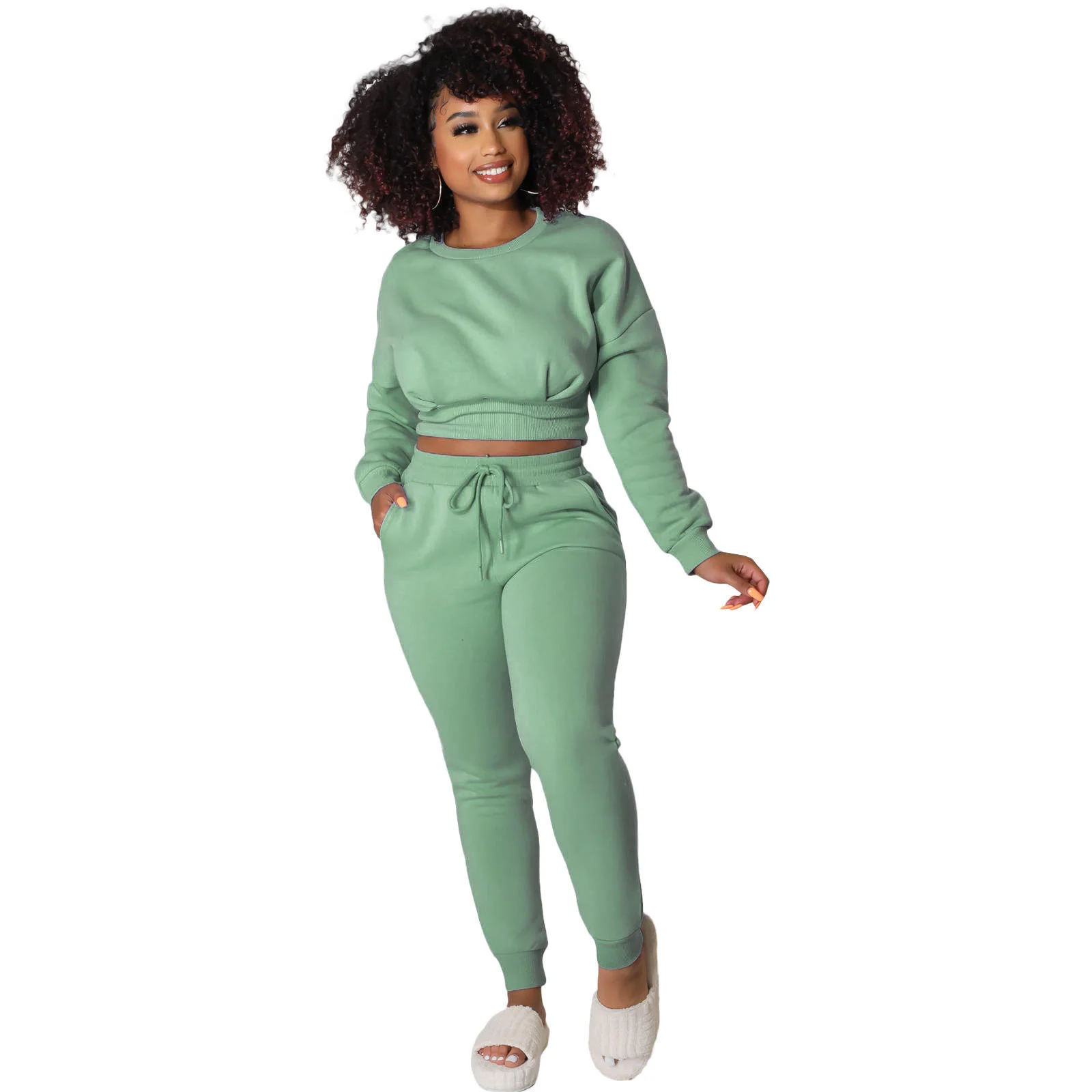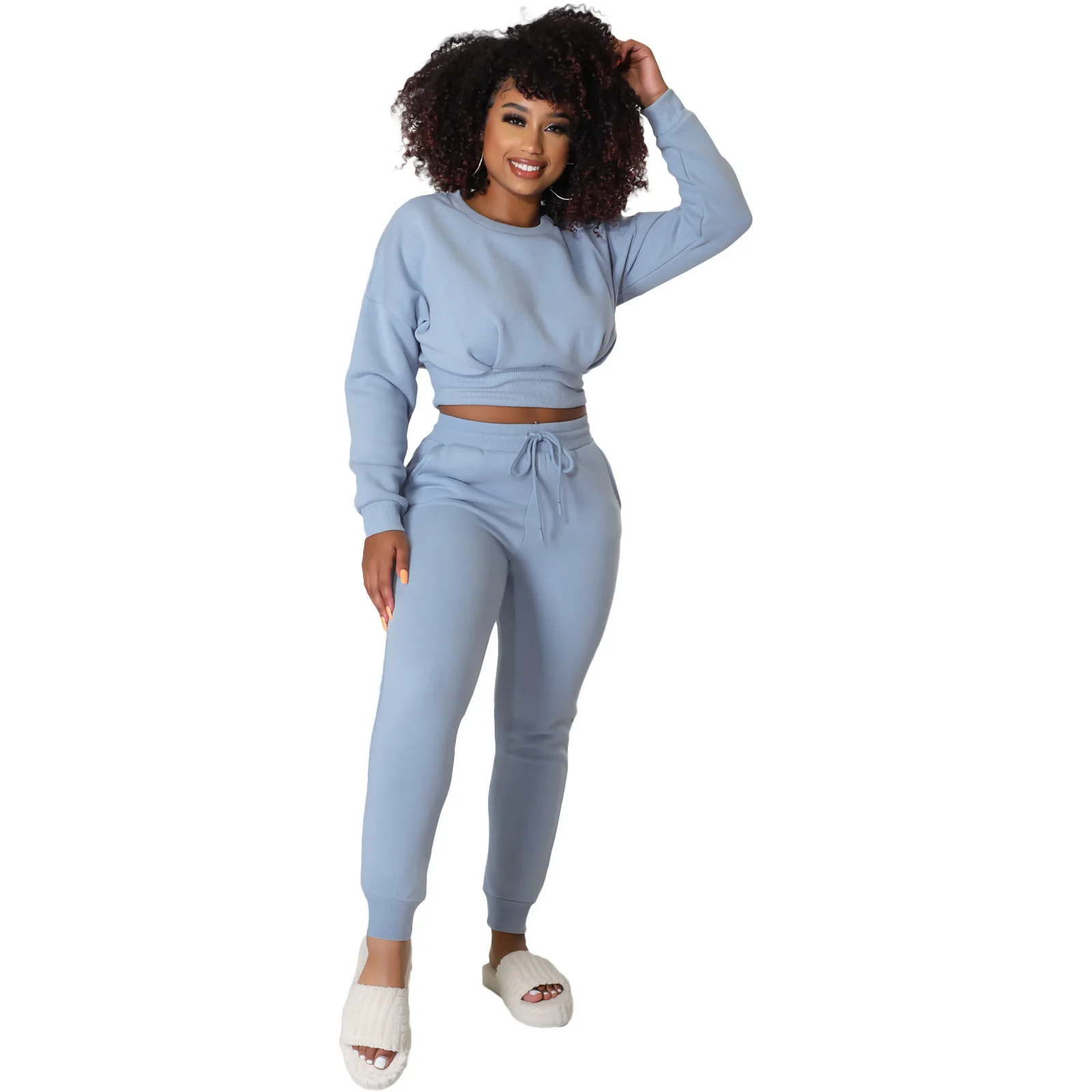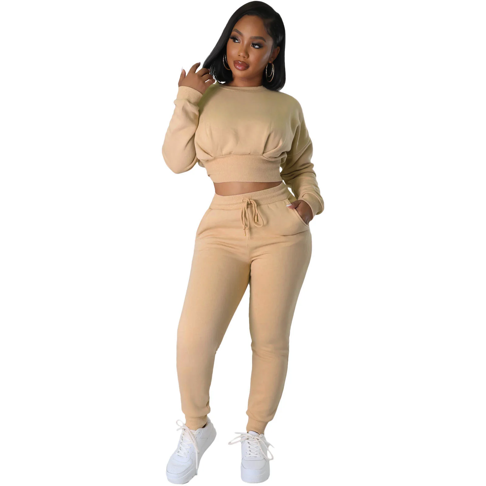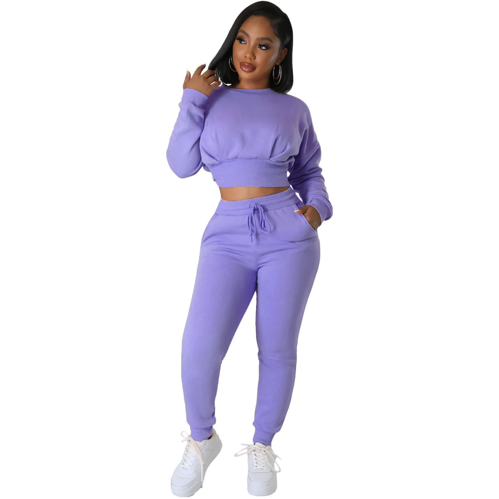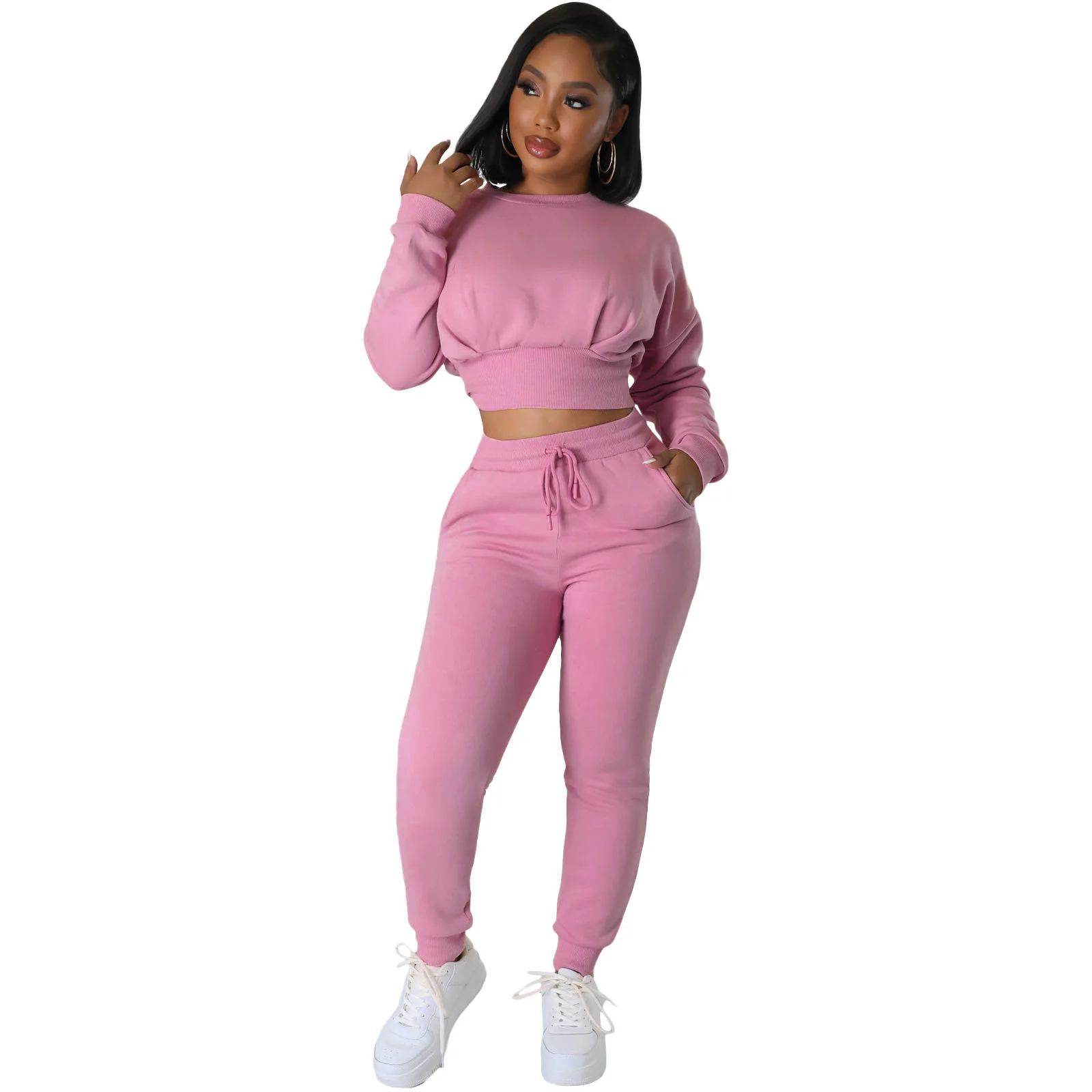 Wholesale Tracksuits For Women 2024 Autumn And Winter Women's Threaded Sports Hoodie Two Sets