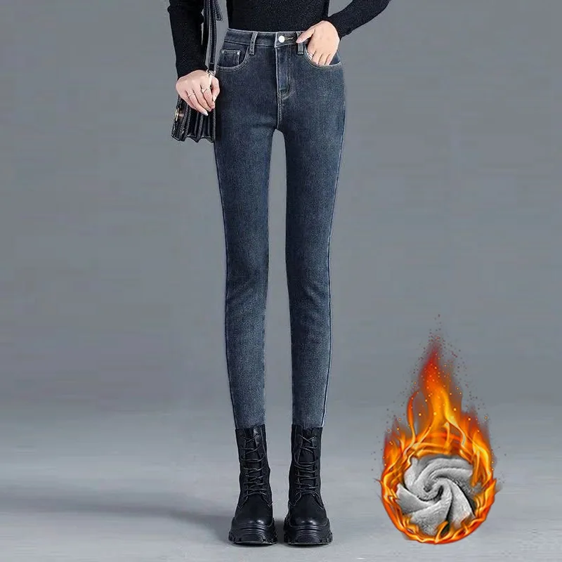 Winter Women Fleece Winter Thick Warm Stretch Denim Pencil Jeans Elastic Skinny Trousers Pants for Women Lady Casual Jeans