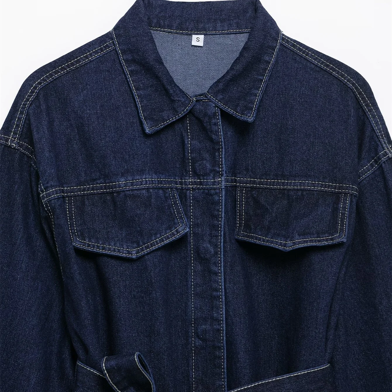 Women's Clothing 2025 Spring New Fashionable Vintage Waist Tie Waist-Cinching Turn-Down Collar Polyester Long Sleeve Set