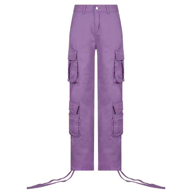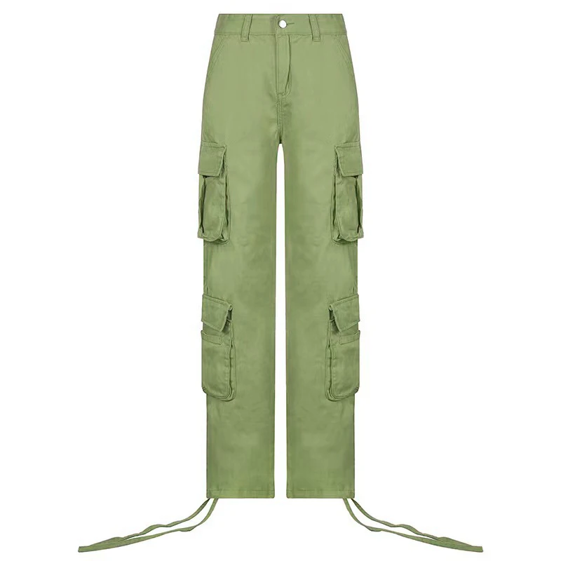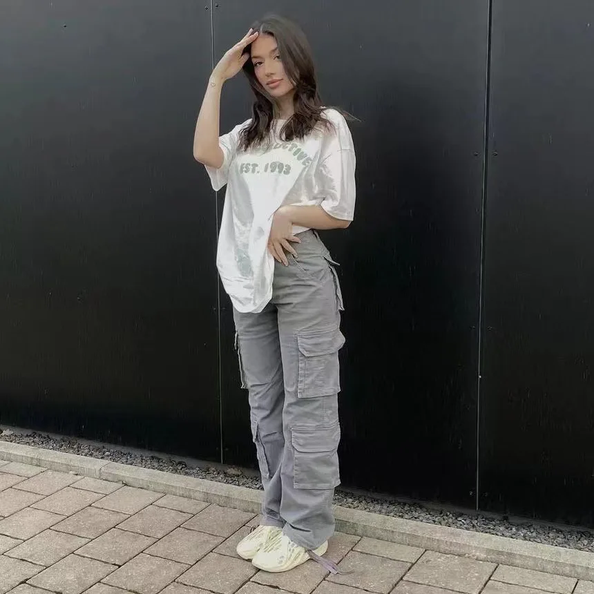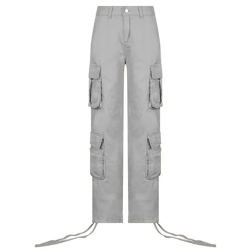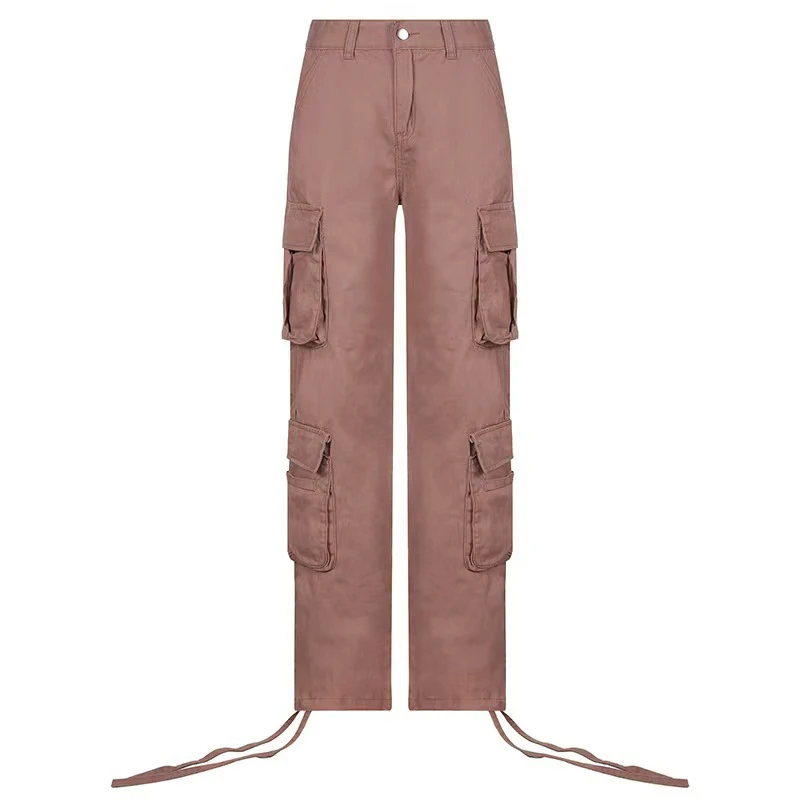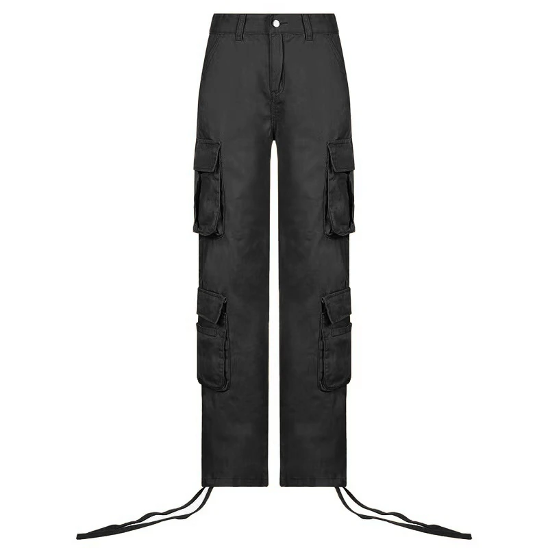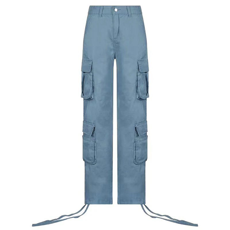Fashion 90s Streetwear Pockets Wide Leg High Waist Straight Y2k Denim Trousers Vintage Cargo Pants Baggy Jeans Women