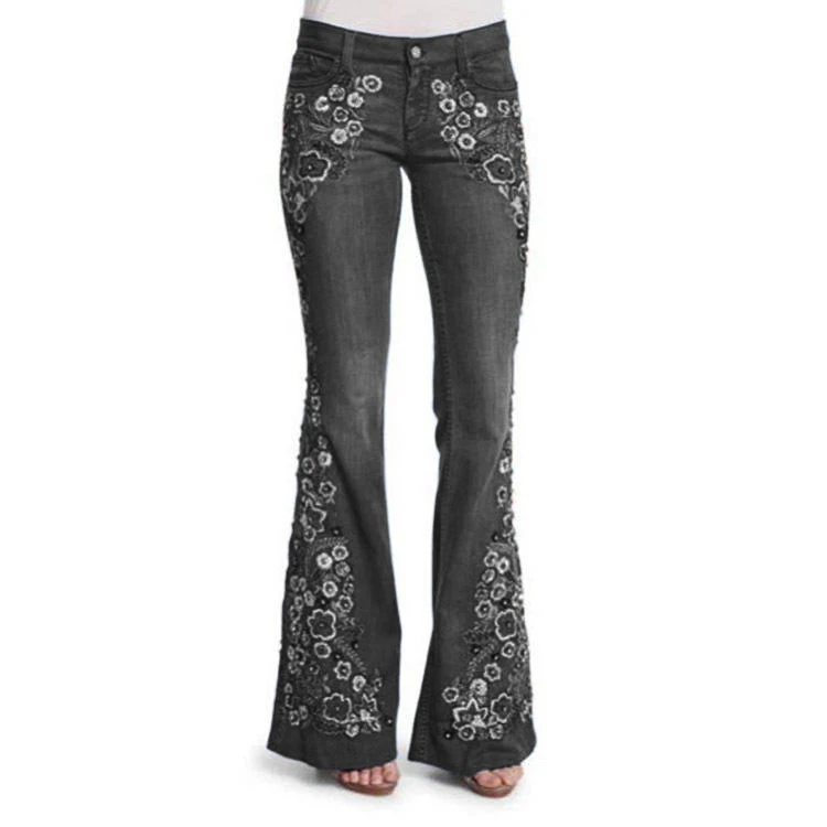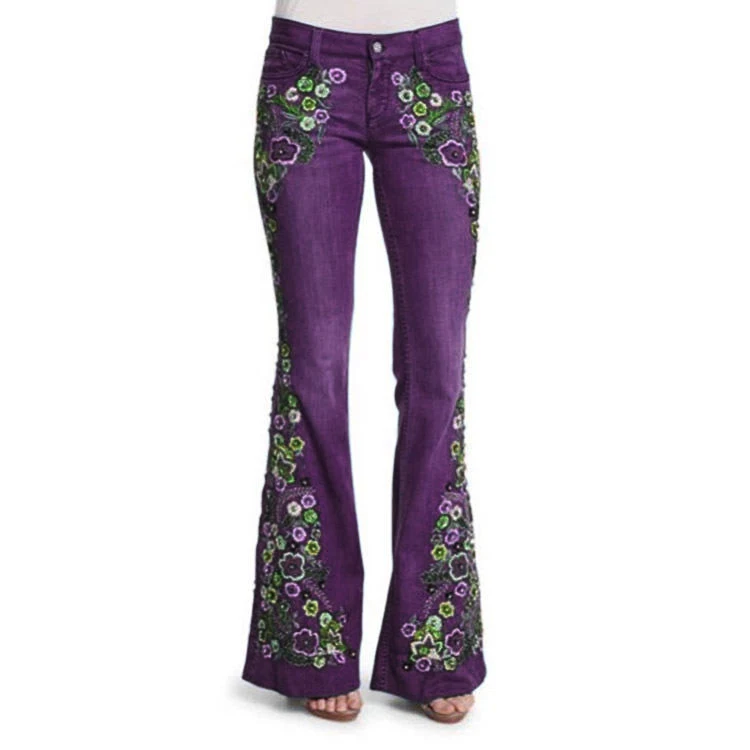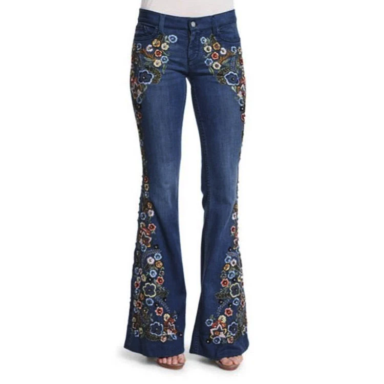 XS to 4XL Women's Jeans Embroidery Patches Slim Show Slim Washed Ladies Pants Womens Trousers Flared Pants Jeans