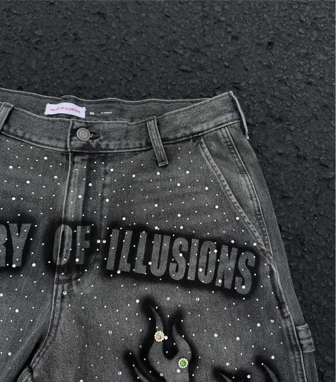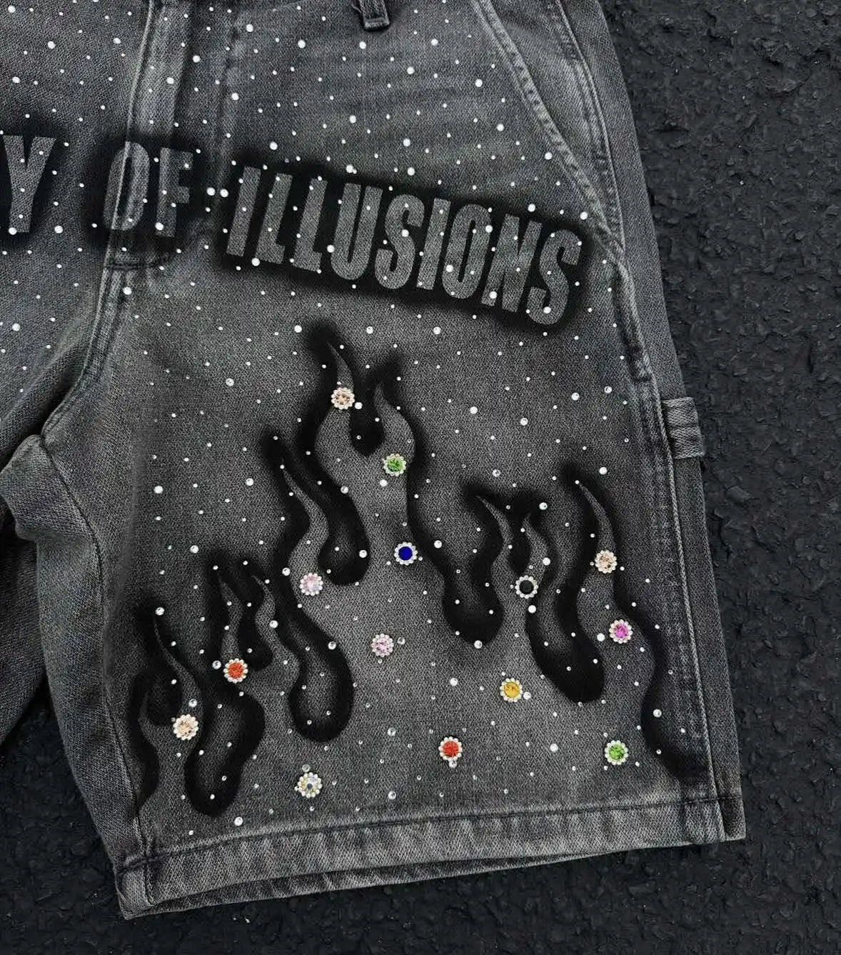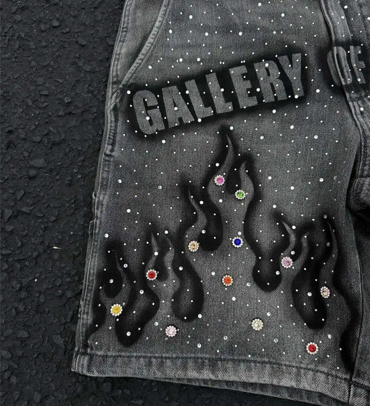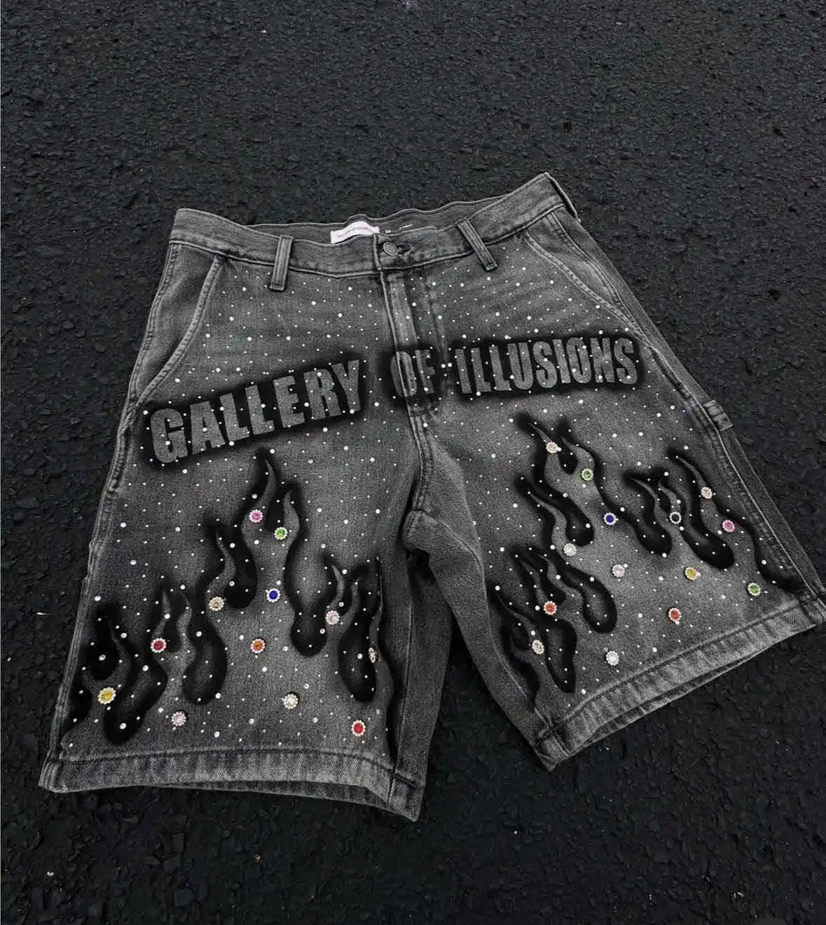 Y2K Summer High-street Fashion Men's Mid Cropped Boot Cut Denim Shorts Hand-painted Prints Rhinestone