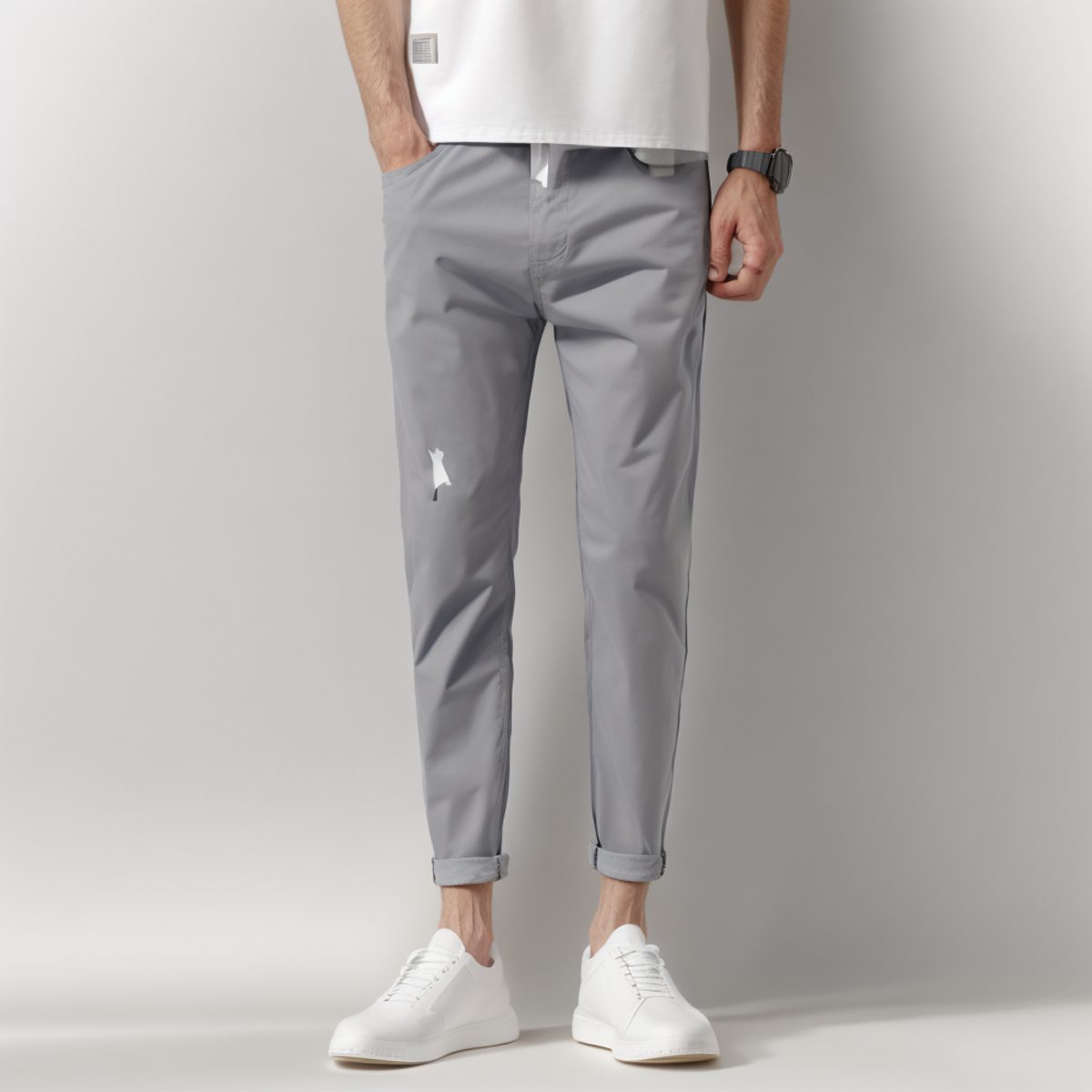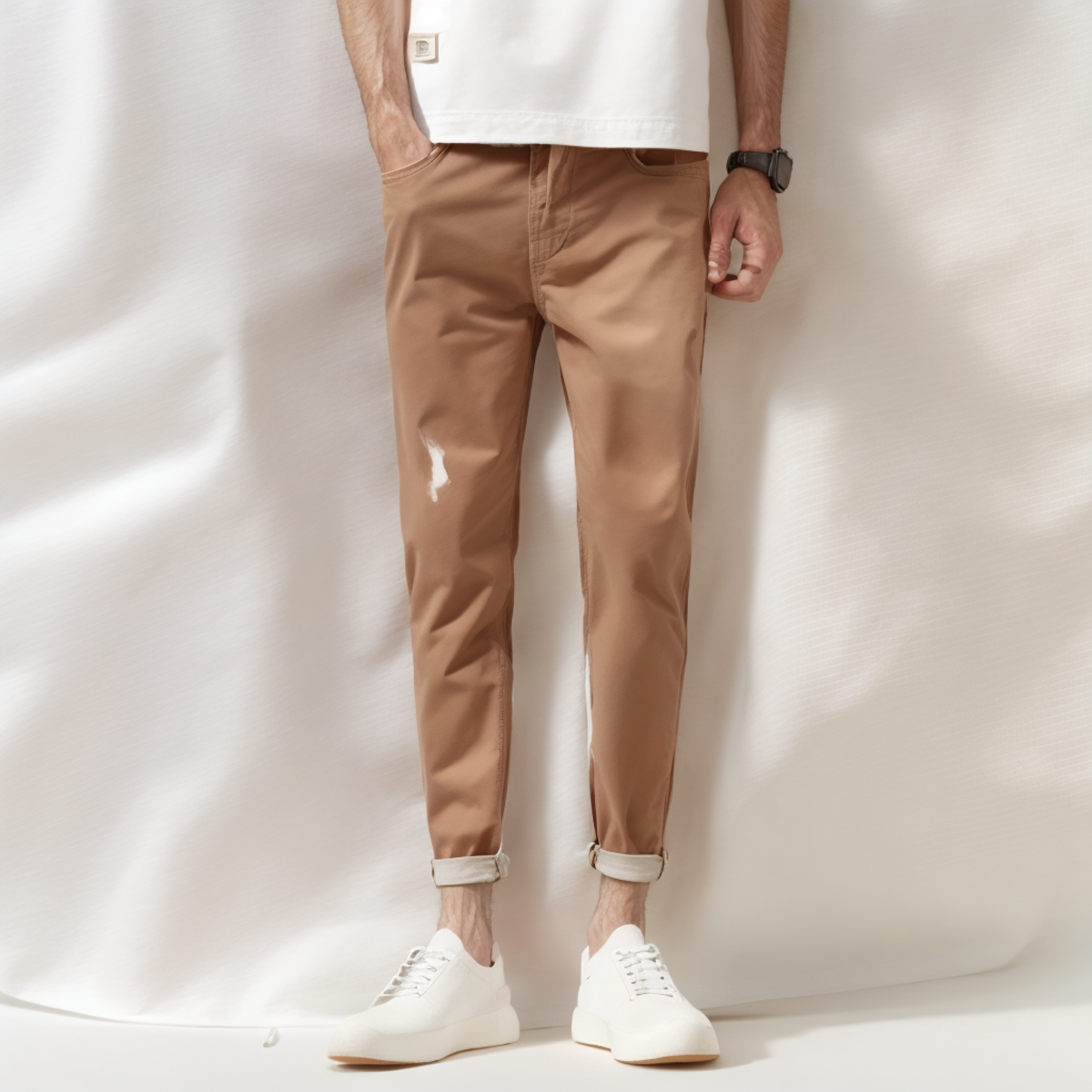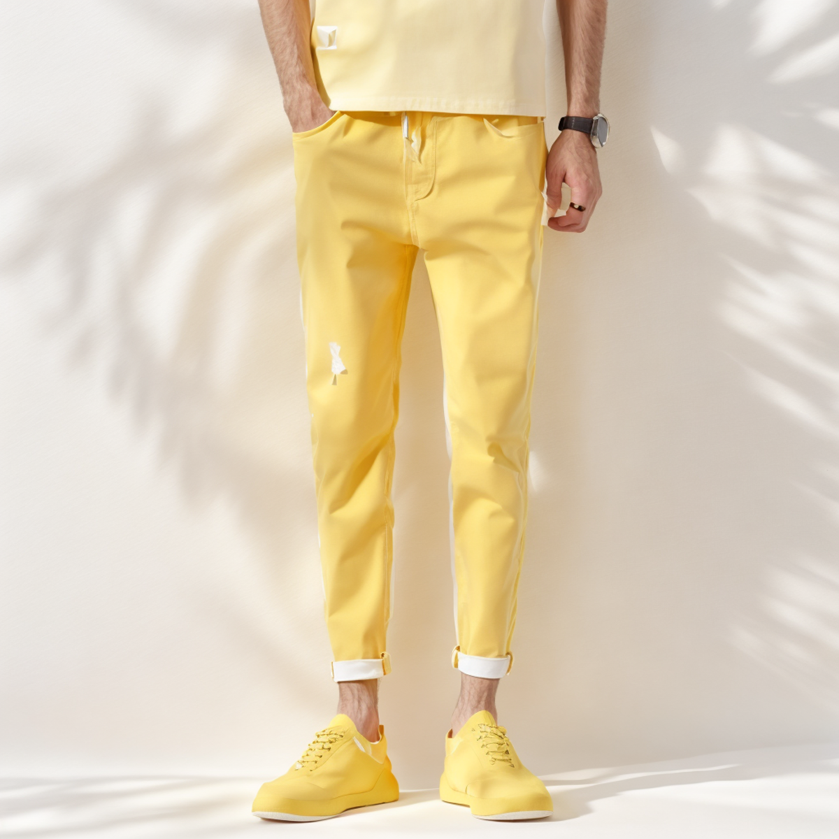 Feitas com os melhores materiais, essas calças jeans são não apenas estilosas, mas também duráveis e confortáveis de usar. A cor sólida adiciona um toque de sofisticação, enquanto o detalhe rasgado dá a elas um estilo moderno que fará você se destacar na multidão.